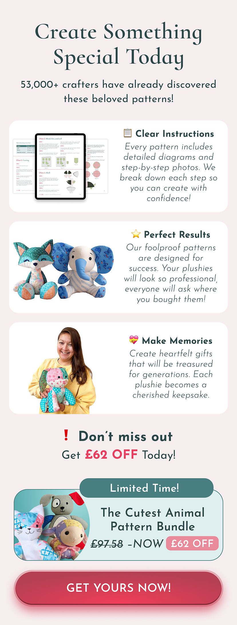Our plushie bundle patterns are designed to be fun for all skill levels! Whether you’re a beginner, intermediate, or advanced crafter, you’ll find the instructions easy to follow and adaptable to your experience level. Just take your time and enjoy the process!