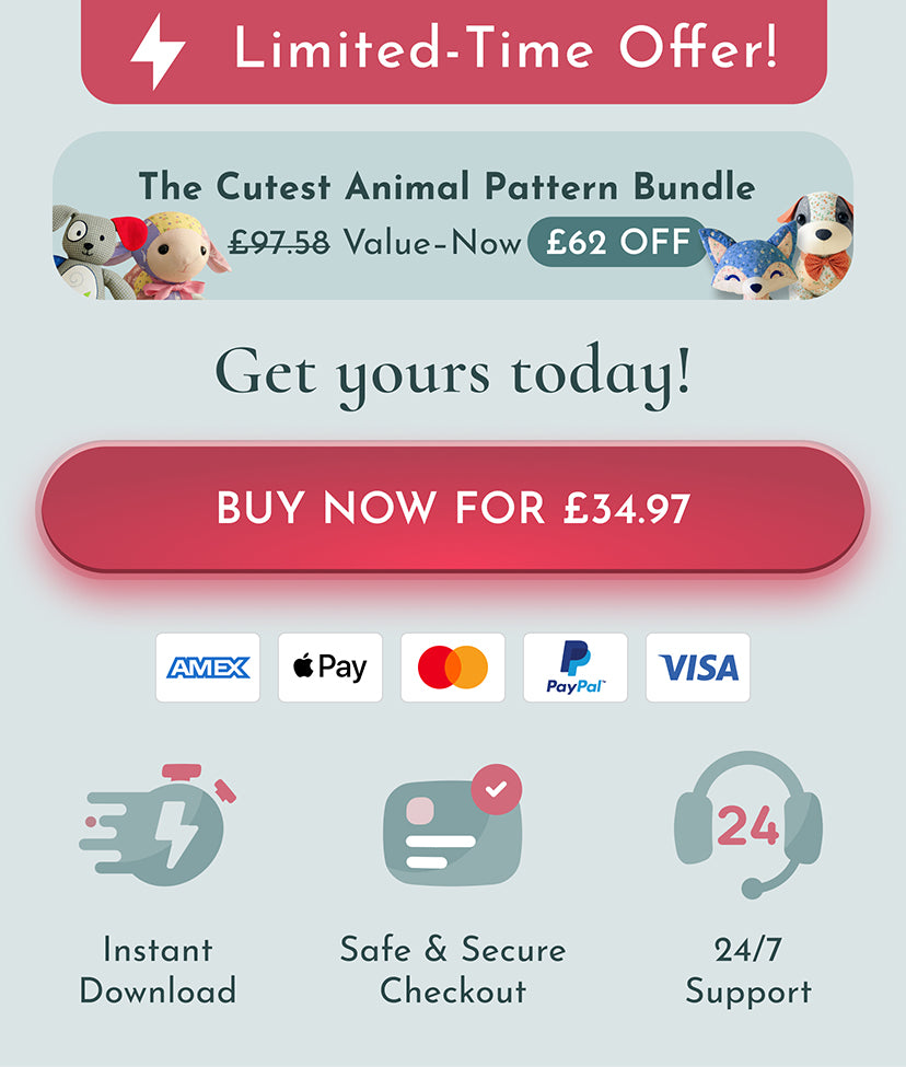 Once you’ve purchased the plushie bundle, your digital pattern will be available for immediate download! Simply check your email or account page for the link to access and download your pattern in PDF format. You can start crafting right away!