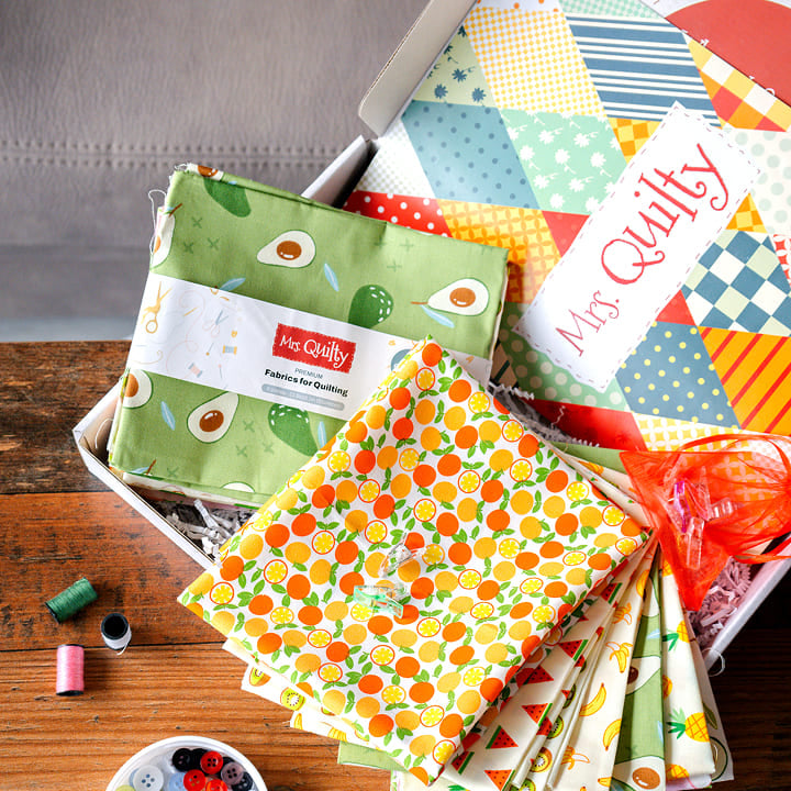 Get curated quilting goodies delivered monthly — fabric, patterns, and inspiration, all in one happy package.